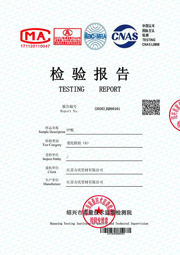 江蘇吉慶管材集團有限公司創(chuàng)辦于2010年2月,是pp管,pp管材,pp管件,pp風(fēng)管,frpp管,frpp管材,pph管,pph管材,pph管件,pph風(fēng)管,pvdf管,pvdf管材,pp儲罐,pp板材的專業(yè)化生產(chǎn)企業(yè)。公司占地30余畝,擁有各類資產(chǎn)8000余萬元,專業(yè)技術(shù)人員20余人,管材生產(chǎn)線10條,管件生產(chǎn)線11條,具備了10000余噸各類防腐塑料制品的年生產(chǎn)能力。公司通過了ISO9001-2000質(zhì)量體系認證,同時被評為AAA信用單位,2018年公司被評為高新技術(shù)企業(yè),此后陸續(xù)取得安全生產(chǎn)管理證書等榮譽。公司位于水上花園城市----江蘇省揚中市八橋鎮(zhèn)永福路18號,交通便捷,可直接導(dǎo)航至公司園區(qū)內(nèi)。公司全體員工將以高度的敬業(yè)精神,嚴格的質(zhì)量控制理念和科學(xué)的管理方法,及時周到的服務(wù),竭力為我國塑料管道在各領(lǐng)域的推廣和應(yīng)用作出更大的貢獻!
